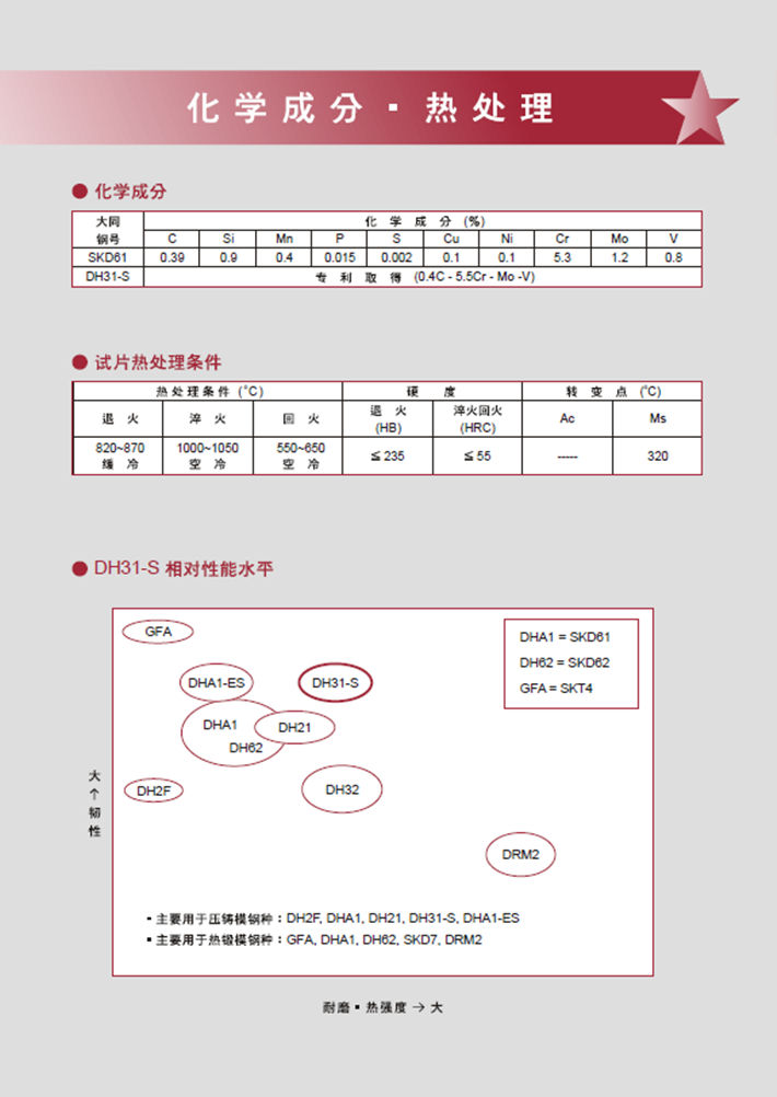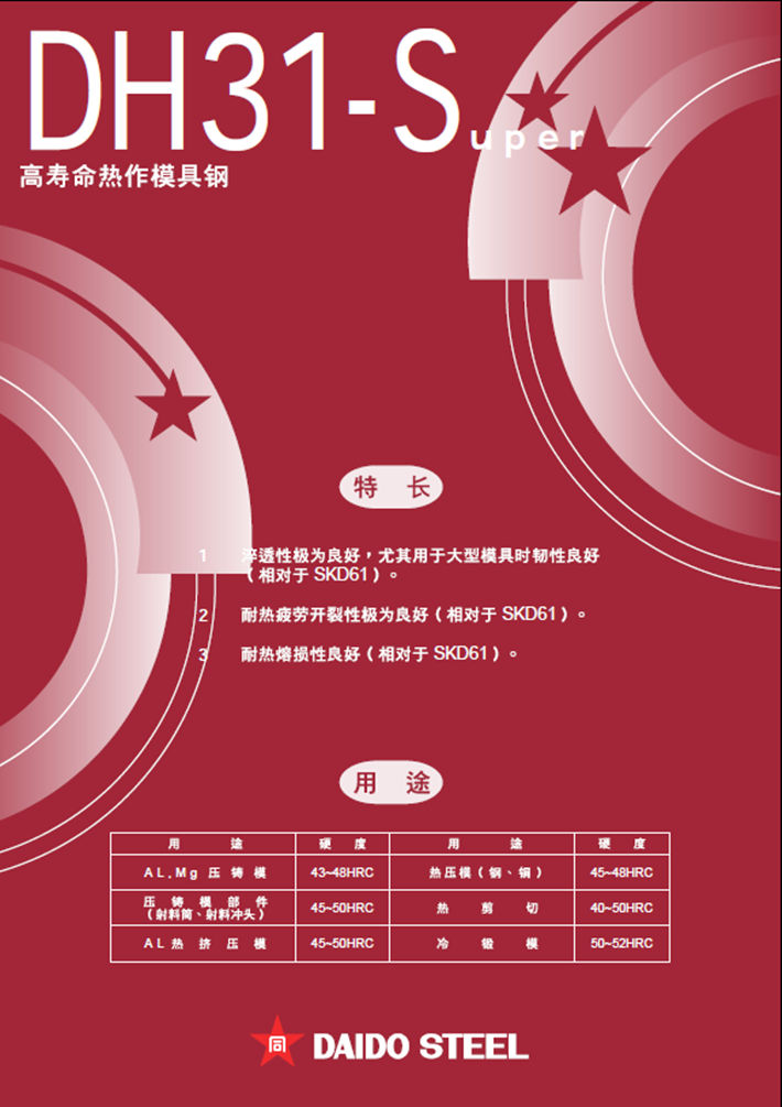簡要描述:日本大同DH31-S熱作模具鋼:高韌性*高溫強(qiáng)度改良鋼...
